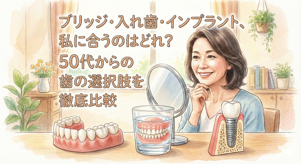 ブリッジ・入れ歯・インプラント、私に合うのはどれ?50代からの歯の選択肢を徹底比較